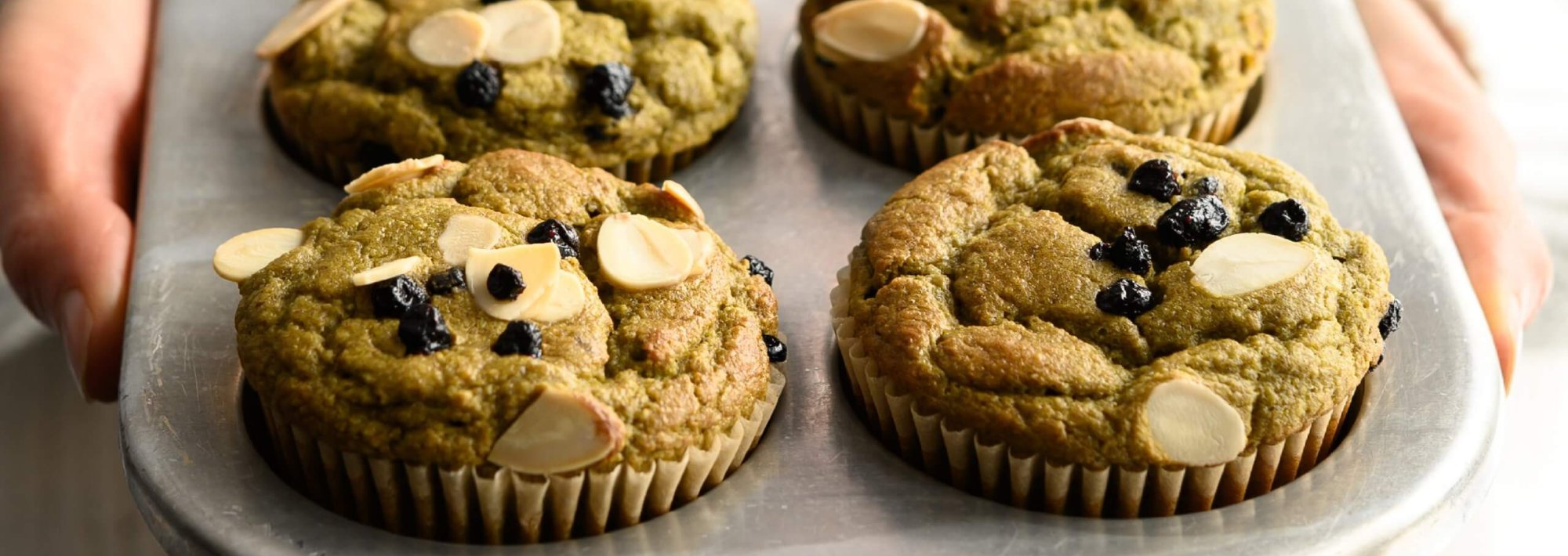 Découvrez les muffins Zen cérémonie : une recette simple, sans sucre raffiné ajouté, qui marie matcha, amandes, bleuets et d’autres ingrédients nourrissants pour créer une collation joyeusement zen.
